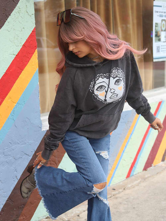 Crying Heart Graphic on Vintage Black Hoodie - Zoya