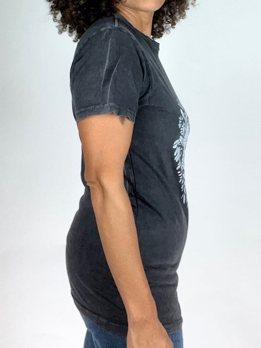 Floral Skeleton Figure on Vintage Black Tee - Alma