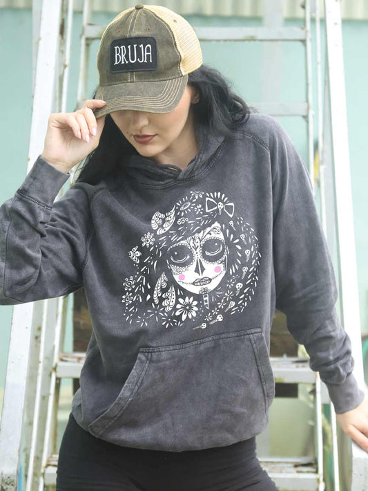 Sugar Skull Graphic on Vintage Black Hoodie - Reza