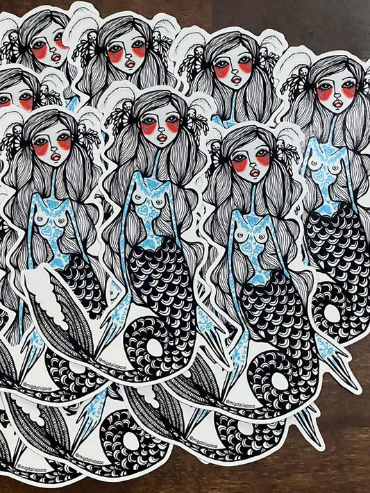 Sugar Skull Mermaid Vinyl Sticker - Mami Wata