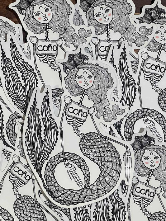 Skeleton Mermaid Vinyl Sticker - Atabey