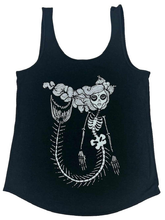 Twin Tale Skeleton Mermaid Tank Top - Libitina