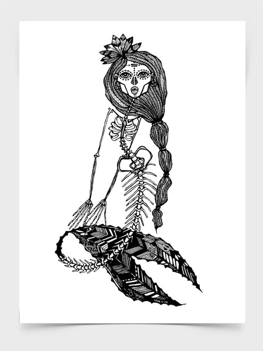 --Cedna Muertos Mermaid Art Print. This is a hand signed original 9x12 art print. Printed on a watercolor paper for a beautiful texture finish.