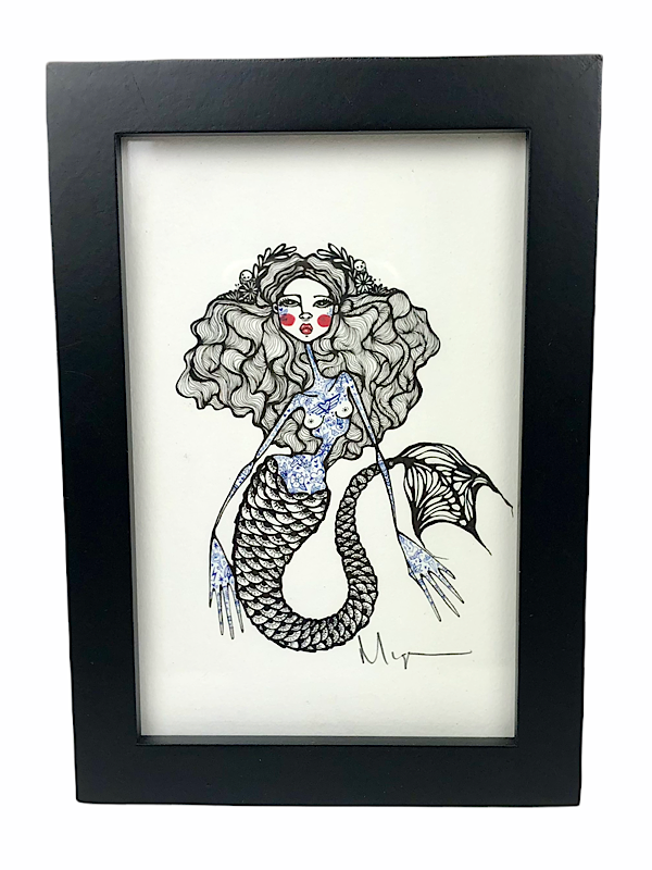 --Diosa Mermaid Frame Art. This is a hand signed 4x6 original art framed print. Printed on a watercolor paper for a beautiful texture finish. With a perfect thin modern frame that you can hang on your wall or put on your desk.