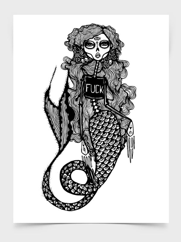 Muerta Fuck Mermaid Art Print. Inspired by favorite word. This is a hand signed original 9x12 art print. Printed on a watercolor paper for a beautiful texture finish.