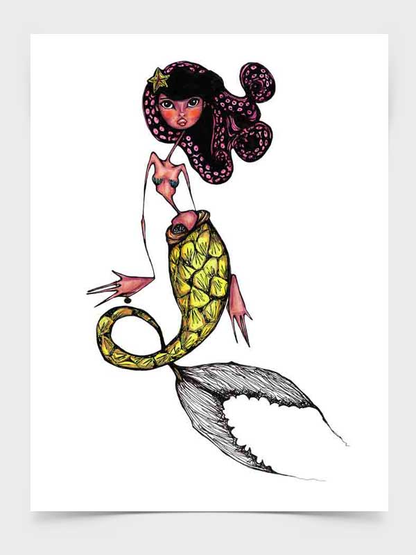 --Lin Mermaid Art Print. My second Mermaid born in 3/24/2015. This is a hand signed original 9x12 art print. Printed on a watercolor paper for a beautiful texture finish.