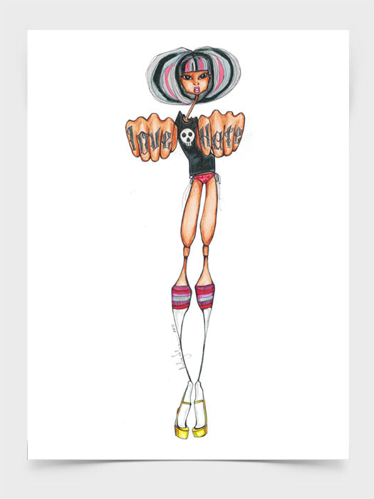 --Love Hate Art Print. This is a hand signed original 9x12 art print. Printed on a watercolor paper for a beautiful texture finish.