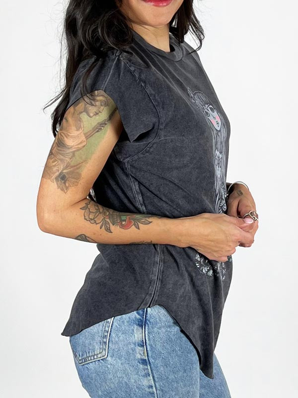 Do you love vintage t-shirts? Well, our boyfriend graphic tee is just like your fave old shirt! It's soft and comfy because it's made from 100% ringspun cotton. Plus, it's been "mineral washed," which means it looks and feels worn in, just like a vintage tee. And because each shirt is hand cut and stitched, it has a loose and comfy fit. Perfect for those lazy days at home or running around town in style!