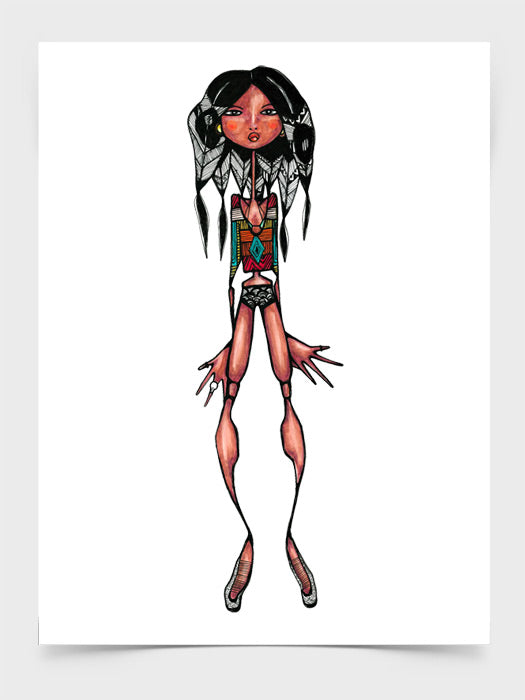 --Ratu Native American Girl Art Print. This is a hand signed original 9x12 art print. Printed on a watercolor paper for a beautiful texture finish.
