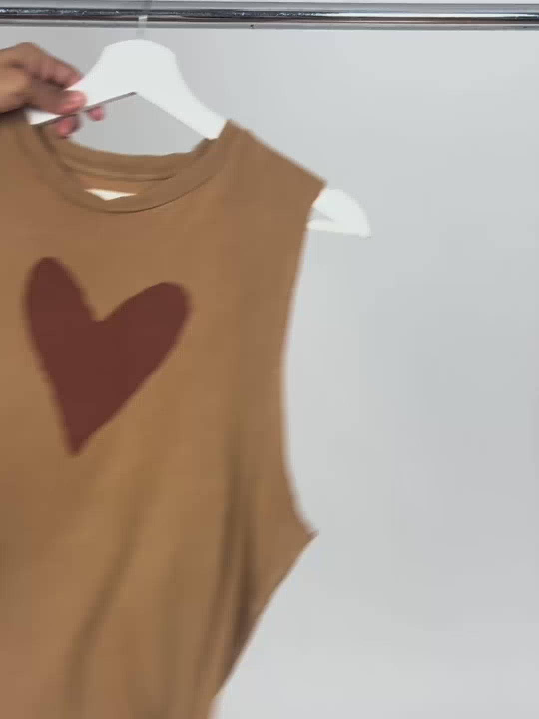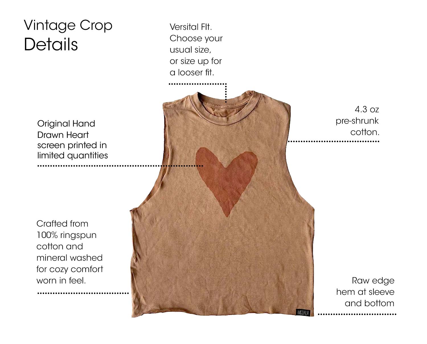We love how this crop top turned out. The vintage camel color fabric just works so well with the imperfect lines of the red heart graphic. The red ink has a hint of sparkle that truly helps this crop shine. ❤️