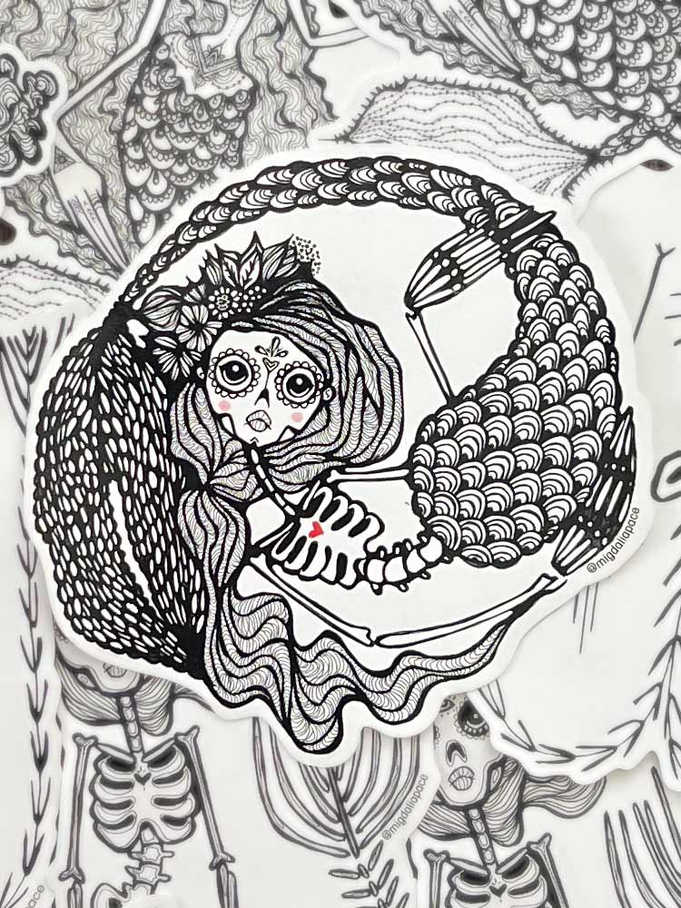 Sugar Skull Mermaid Vinyl Sticker - Mami Wata