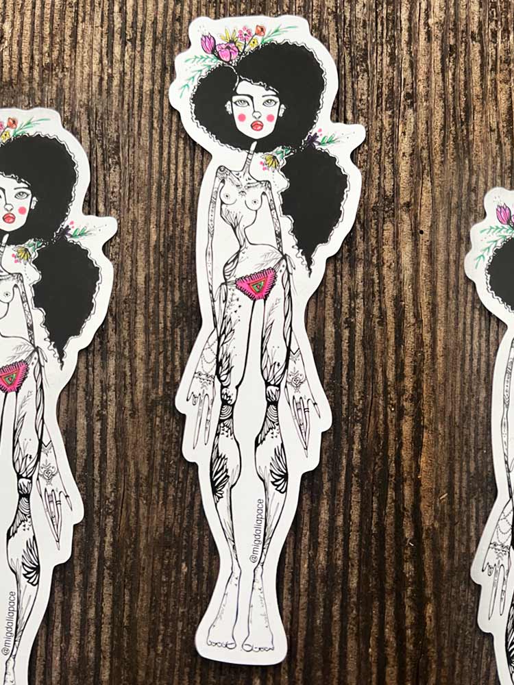 You can’t go wrong with this cute tattoo lady sticker. Add fun to your computer, tumbler or even your car with this durable vinyl die cut stickers with original artwork.